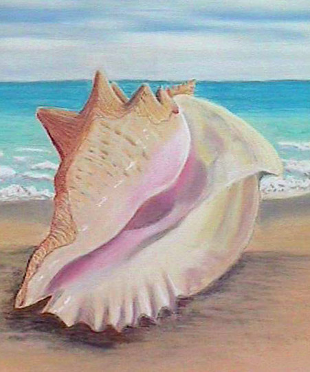 ![]() Here is a pastel drawing I recently completed of my favorite shell, which I have had since I was a child. The ocean scene is based on the Carolina coast. |